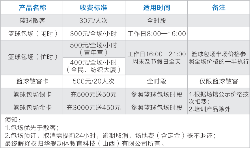 華艦動體全民健身中心籃球館,位于太原市小店區(qū)王村南街30號山西省體育場西北角。占地面積約800平米,有一片標準籃球場。現(xiàn)在館內(nèi)開展籃球散客、包場、培訓(xùn)服務(wù)。